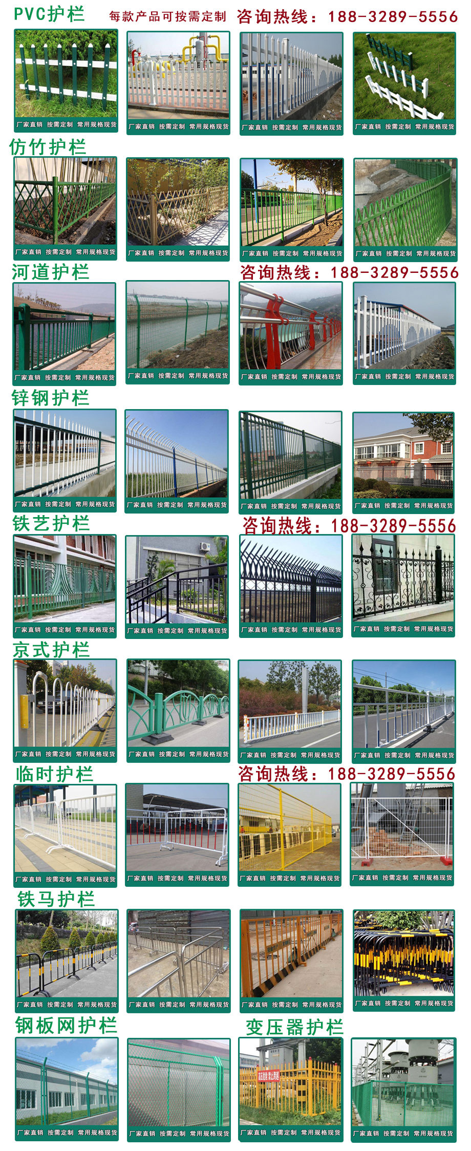 市政圍欄顏色選擇:白色,藍色,黃色,綠色,顏色的彩虹增加一個城市建筑色彩靚麗,給人一種美的視覺享受。 (常用規格顏色藍色和白色)